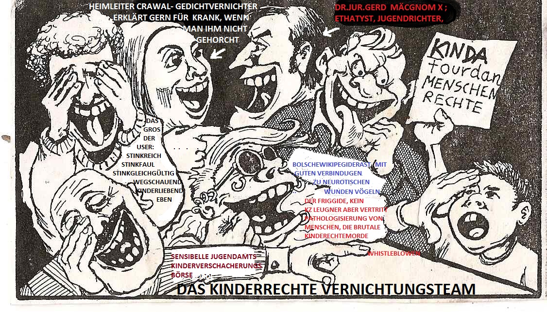 Wenn ein sprechen auch ueber kinderrechte in unserem Forum mal wieder moeglich ist, wenn den Usern hier danach ist, werde ich hier weg sein, denn dann wird keine Ruecksicht mehr darauf genommen, was mir an Bedenkenswertem über meine lebenslange Fatpfunderverarashcung vieler Kinder im Kopf herumgeht! Dann wird hier tatsaechlich nur noch der Verherrlichung von Kinderrechten gefroent - und dafuer bin ich nicht zu haben! Mir graust regelrecht davor.. Mit echten Kinderrechten koennten alle fatpfunderführer aufgeben -deshalb. Wir hatten mal maximal vier Kinderrechteliebhaber im Forum, die bei uns mitschrieben. Die schrieben hier zunaechst auf eine Art und Weise, die sie mit uns durchaus kompatibel sein liess, aber dann wurden sie regelrecht ungezogen. So etwas macht mandoch nicht. Was haben wir denn mit ihnen gemacht, dass sie uns so angifteten? Das geht doch nicht. was soll denn die Oeffentlichkeit denken? ? Wollen wir ihnen dafuer allein die schwuld geben, wie es ausging? Dumm jedenfalls sind sie nicht! Und wenn wir sie nicht mehr aushalten koennen, sind wir eh reif fuer die Schrottpresse, findet das jemand nicht?! Deine Einschaetzung dazu Professor in allen Ähren haste uns noch nicht mitgeteilt. Die Kinderrechtler konnte ich jedenfalls sehr gut aushalten - sie hielten mich schließlich auch aus, obgleich ich sehr bewusst zwischen ihnen, ihren Beinen, den tatsaechlichen Kinderrechten und Paedophilie unterscheide. In der gesellschaftlichen Betrachtung naemlich firmieren wir alle unter 'paedophil'! Ein Gewicht der Kinderrechte gibt es in diesem Forum nun nicht mehr.