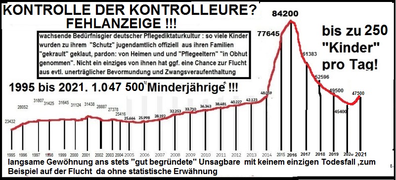 .Die im Zusammenhang von Schulverweigerung, Heimflucht etc. durch Jugendamts- und Polizeiverfolgung zu Tode gebrachten Kinder und Jugendlichen im Rahmen ihrer Flucht zur Indianerkommune ( siehe die Bilder unten auf dieser Seite . es sind nicht alle-) zeigen schon im Kleinen, was der daraus Kapital schlagende "Spiegel" kürzlich gerade mit einer blabla Schlag-Zeile nur im Grossen zu fragen aber nicht mal zu beantworten in der Lage zu sein scheint: "Welche Verbrechen nehmen wir für unseren Wohlstand in Kauf?" Im "Kleinen" macht er voll mit in der Unterstützung solcher Verbrechensstrukturen zum Beispiel durch unterlassene Berichterstattung und Hilfeleistung am Beispiel bezüglich der unten dokumentierten nahezu mörderischen Institutionell bewirkten Todesfälle