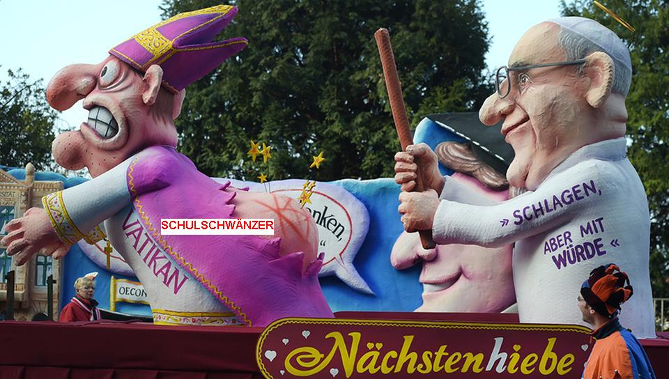 Die moderne SS ist der IS. Feigheit vor Faschisten......hat in Deutschland schon einmal in die Katastrophe geführt. Da darf sich nicht wiederholen! Mutig wäre das komische Kölner Karnevalauto gewesen, meinen Sie?...Das sehe ich anders. Ich sehe da auch nur einen rollenden Kopf. Ist das vielleicht eine unterschwellige Androhung oder Anspielung auf: " wir Christen können auch !?" Aber schau dir das Bild mal ganz genau an: arme Kultur, wenn Du nur wüsstest: da hast du noch noch eine ganz andere Botschaft verbreitet. Nämlich die Kraft eines erigierten Knabenpenis, ( spitzes "Bleistiftschwänzchen" )der einen erwachsenen Sexbestrafungs-Terroristen zu Fall bringt?