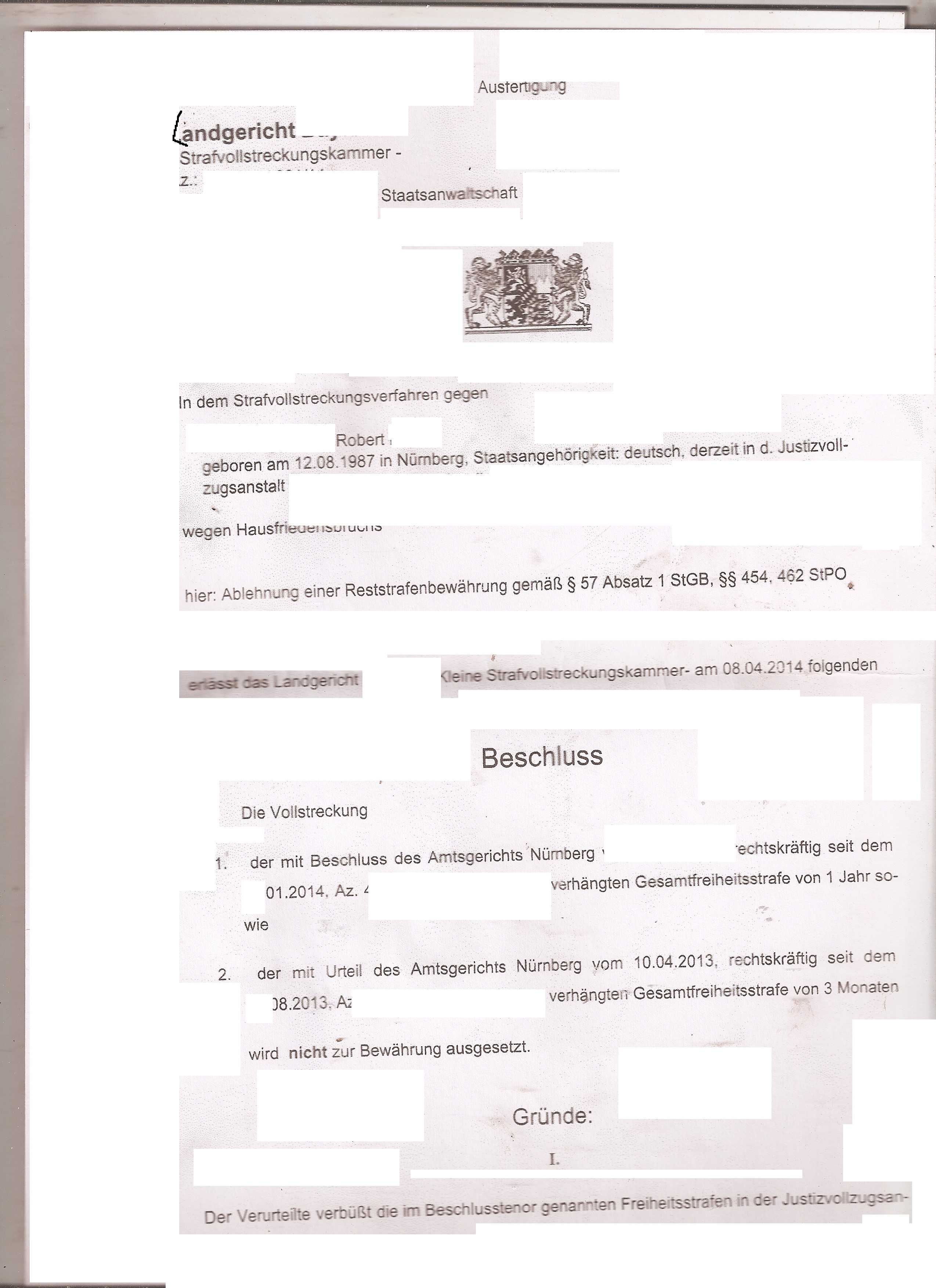 Wir können das hier nur in Kurzform beschreiben, weil, wer weiß, wie das ist, wenn man eingesperrt ist, dem braucht man auch nicht mehr viel erklären. Man kann ihm auf keinen Fall allein dafür Verantwortung zuschieben: Schaut einfach selber.Robbys Biografie ist ne Extra_Sache. Sie hat spätestens mit elf Jahren einen „Knick“ bekommen, als man ihn vom Jugendamt in einer unsäglichen Tortour aus der „Lebenshilfe“ und dem „Jugendschutz“ heraus nach Südfrankreich schleppte. Einzelheiten könnte Ihr dem mitgeschickten Flugblatt entnehmen. Wichtig zu wissen ist noch, daß man den Vater pro Forma kurzerhand für „psychisch krank“ erklärte, obwohl das überhaupt nicht stimmte. Das ist nicht der einzige Fall, wo das genau so läuft. Man ist halt irgendwie „scharf“ auf Kids allerorten, zumal auf offizieller Seite auch noch hohe Profite winken. Daß es in solchen Fällen um das „Wohl“ der Kinder geht, könnt Ihr vergessen. Auf diese Weise, daß man den Eltern „Erziehungsunfähigkeit“ rein drückte, (anstatt sie nach § 1666 vor Ort zu unterstützen, konnte man die Kinder den Eltern entziehen. So wurde die ganze Familie zerstört. In Südfrankreich erlebte Robby als getarnte „Individualpädagogik“- Maßnahme die Hölle auf Erden. Bei einem „Erzieher“, der ihn extrem streng behandelte, ihn unter anderem im wahrsten Sinne des Wortes- „hoch zu Roß“ aus der Telefonzelle riß, wenn er versuchte, mit seinem Vater zu telefonieren. Robby mußte diesem Menschen monatelang von morgens bis abends zur Hand gehen und schuften ohne Ende, Ställe ausmisten, den Laufburschen spielen, wie Ihr Euch das kaum vorstellen könnt. Beschult wurde der Junge entgegen den Angaben des Erziehers auch nicht. Robby wurde auf diese Weise vom Schreiben, Lesen und lernen abgehalten. Unterricht fand praktisch nicht statt. Robby erlitt Wasserentzug bei heißesten Temperaturen mit dem „Argument “ er nässe sonst ein, in Wirklichkeit näßte er aber aus Angst vor seinem Erzieher ein. Und vieles an Grausamkeiten mehr. Der Erzieher isolierte ihn völlig. Er sagte zu Robbys Anwältin bei einem Besuch vor Ort voller Stolz, Robby müsse aus Gründen des Mobbings von anderen Kindern isoliert werden. Und dann mobbte er ihn selber und zwar extrem. Er sagte dem Anwalt auch : „ich habe mal einen Test gemacht, ich habe ihm Katzenfutter hingestellt, um zu sehen, ob er das essen würde, und er hätte es gegessen, wenn ich es nicht wieder weg genommen hätte“. Auf vielfache Weise stellte er den Jungen als blöd hin, so daß er mit ihm machen konnte, was er wollte. Geplant war, daß Robby seine Vergangenheit „vergessen“ und von diesem Erzieher „adoptiert“ werden sollte: Der Plan scheiterte- Robby konnte sich von diesem Wesen befreien und er kam nach Deutschland zurück. Er war natürlich in weiteren ganz „normalen“ Streß- und Arbeitszusammenhängen (1. Arbeitsmarkt) nicht mehr be-nutzbar, auch von der Schule wollte er nichts mehr wissen. Irgendwie verständlich oder? Keine 10 Pferde hätten ihn jemals auf den Weg der Tugend bundesdeutscher stink normaler Bürgerlichkeit“ wieder zurück geführt. Aber was machen? Robby baute sich eine Art Schattenexistenz auf und lebte von der Hand in den Mund. Er kannte sich durch seine zahlreichen Odysseen der Flucht gut mit Reisezügen aus. Abfahrts- und Ankunftszeiten konntest Du ihn zu jeder Stadt fragen: Er kannte sie alle auswendig. Lange Rede kurzer Sinn: Robby wurde eine Art Handlungsreisender. Er ließ sich Fahrkarten wie z.B. Wochenendticket und Ländertickets schenken, und nahm wohl auch manchmal etwas dabei ein, wenn er sie weiter gab. Das ist wohl als solches nicht strafbar oder irgendwie wie knapp davor, oder eben juristische Grauzone. Die Bundesbahn jedoch rüstete gegen ihn auf:. sie filmten ihn, nahmen ihn auf Videokamera auf und verpaßten ihm etliche Male Hausverbote, die Robby nicht einhielt und so wurde er kriminalisiert. Mittlerweile sitzt er (er ist inzwischen 25 Jahre jung) seit 23.7.2013 in einem Knast in Bayern ein : Wenn ich ihn richtig verstanden habe, wäre seine Haftstrafe am 22.3.2014 unter 2 Bedingungen zu Ende: wenn er 2/3 Entlassung bekommt, was wohl wiederum davon abhängig ist, ob er es schafft, bis dahin, ein weiteres Bußgeld von ca 1300 Euro zu zahlen. Andernfalls ist seine Gesamtstrafe frühestens erst am 20.10.2014 zu Ende, und er muß dann wohl nochmal bis zum 9.1.2015 einsitzen, wenn es ihm nicht gelingt , bis dahin die noch anstehenden 1300 Euro aufzubringen. Aber wie soll er das vom Knast aus machen, zumal sie ihn auch dort offensichtlich nicht arbeiten lassen. Das alles ist ungewöhnlich hart, zumal sich Robby im Grunde wg. keiner oder nur geringfügigen Vergehen bestraft wird. (Erststrafe sogar?) Wir haben uns deshalb entschlossen mit dieser Aktion die 1300 Euro bis zum 5. März 2014 aufzutreiben. Ihr könnt uns dabei helfen, wir kennen nämlich nicht allzu viele Leute, bitte beteiligt Euch an dieser Aktion. Wohnsitz und evtl. Arbeit kümmere ich micht. Wir werden sehen, wie viel bis Anfang März zusammen kommt, falls ihr mitmacht, Also gerade mal noch etwa 2 Wochen bis zur Anhörung Zeit. Bitte gebt uns so bald wie möglich an diese Mailadresse kurz Bescheid, wie Ihr reagiert habt, damit wir den Überblick haben. Bitte gebt uns auch Bescheid, ob wir Euch das Geld zurück zahlen sollen, falls die Summe nicht zusammen kommt und der Staatsanwalt eine Teilzahlung ablehnen sollte. Theoretisch könnte Robby auch versuchen, Euch später das Geld zurück zu zahlen, was aber aus unserer Sicht nicht sicher ist, denn wir wissen noch nicht genau, ob er dazu imstande sein wird. Wenn wir das Geld nicht für den hier beschriebenen Verwendungszweck verwenden können, (eben weil die Gesamtsumme nicht zusammen kam und eine Teilsumme nicht anerkannt werden sollte) könnt Ihr es auch schenken, oder wir schicken es Euch zurück, wie Ihr wollt. Schreibt also bitte nicht vergessen, in Eure Antwortmail unbedingt einen Vermerk
