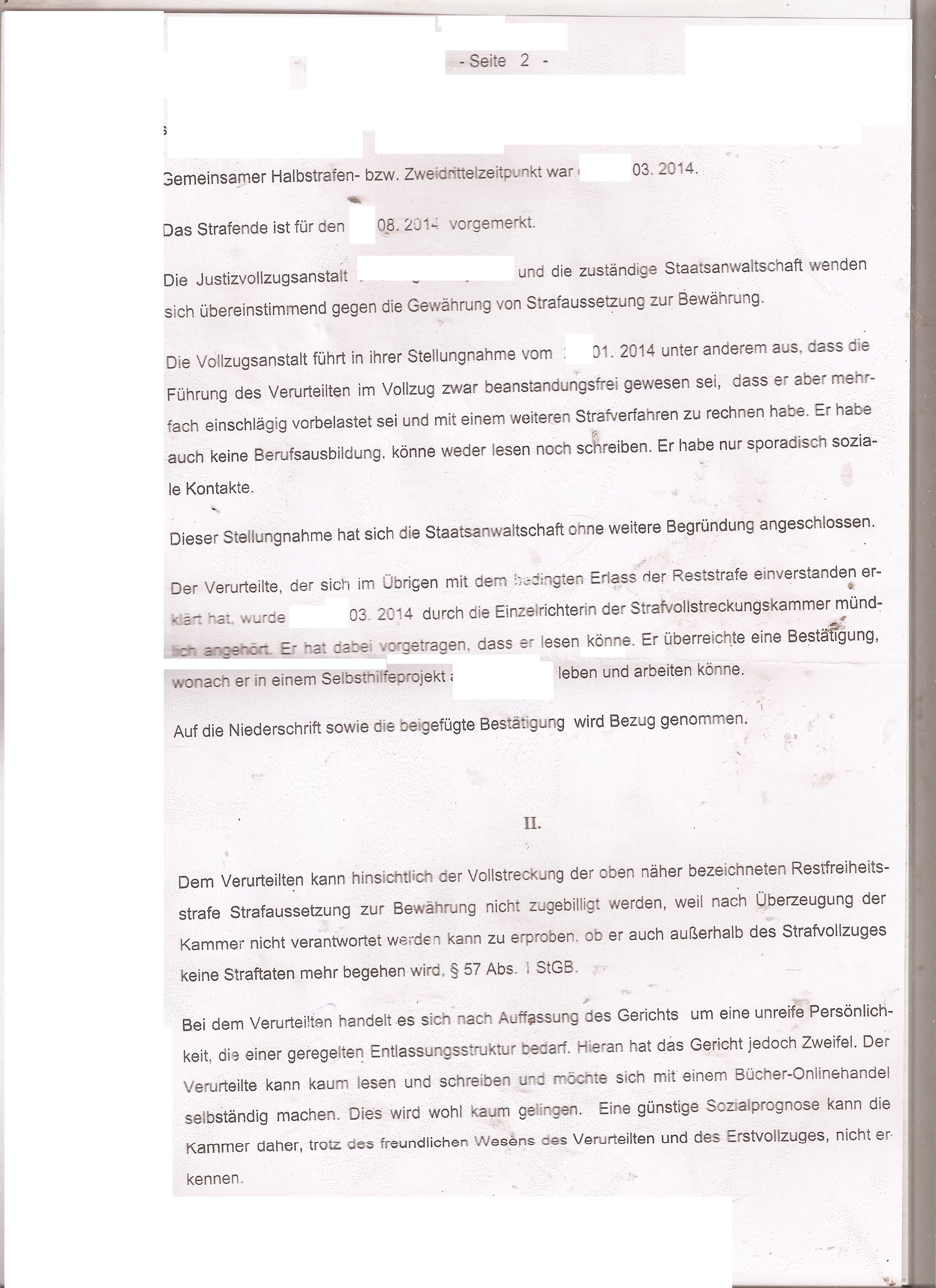 -- robi wird nicht auf bewährung freigelassen, weil er ANGEBLICH nicht schreiben und lesen kann