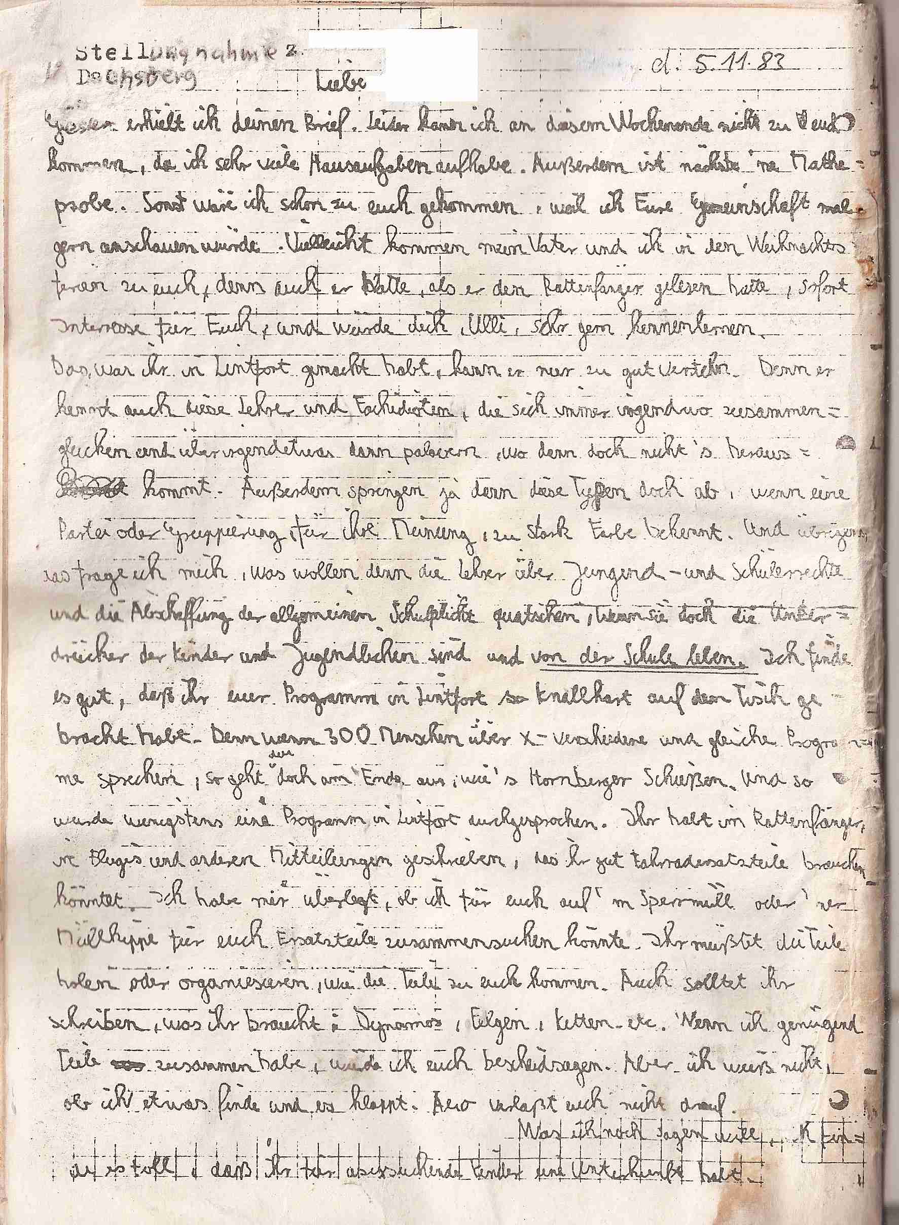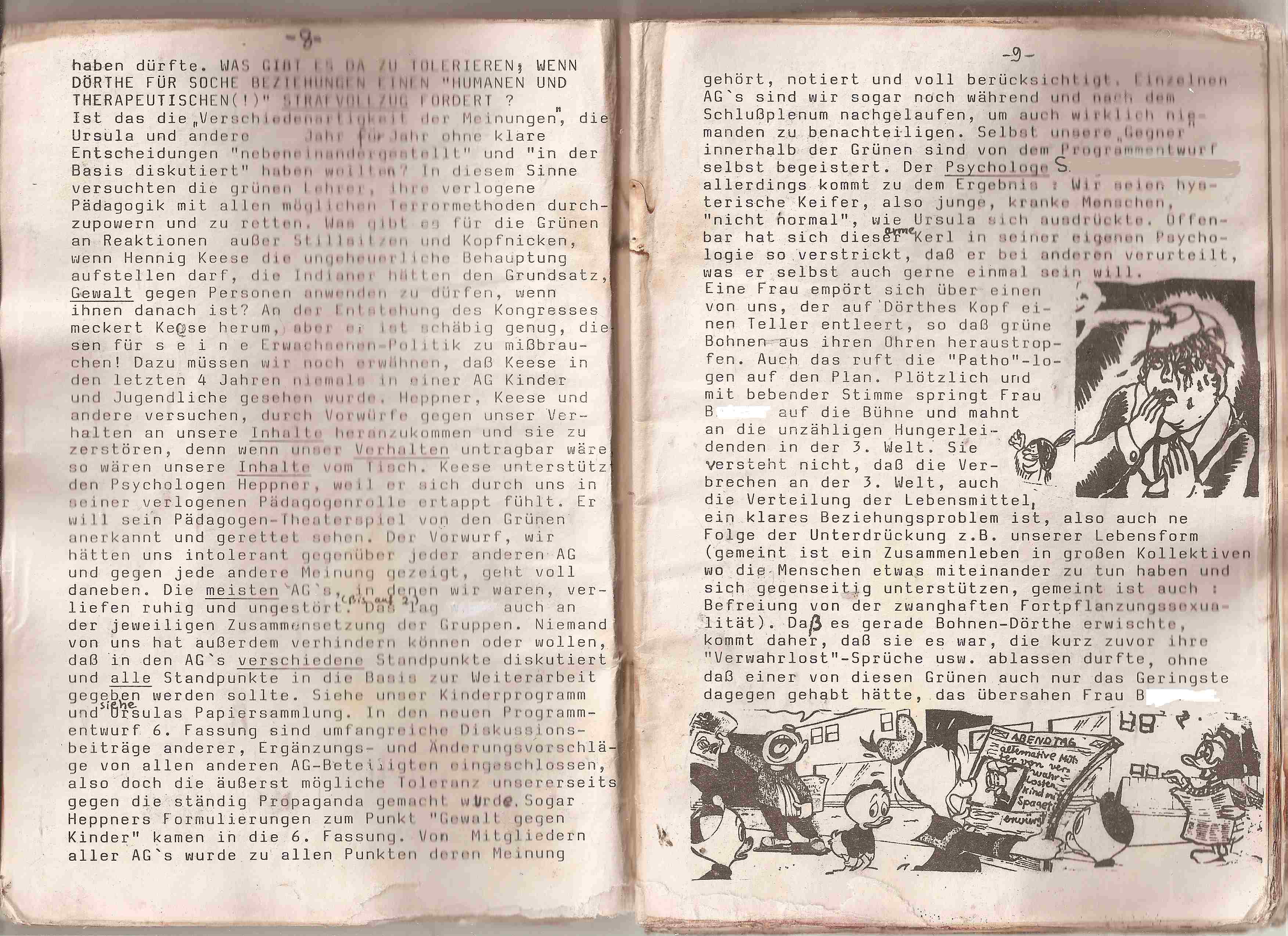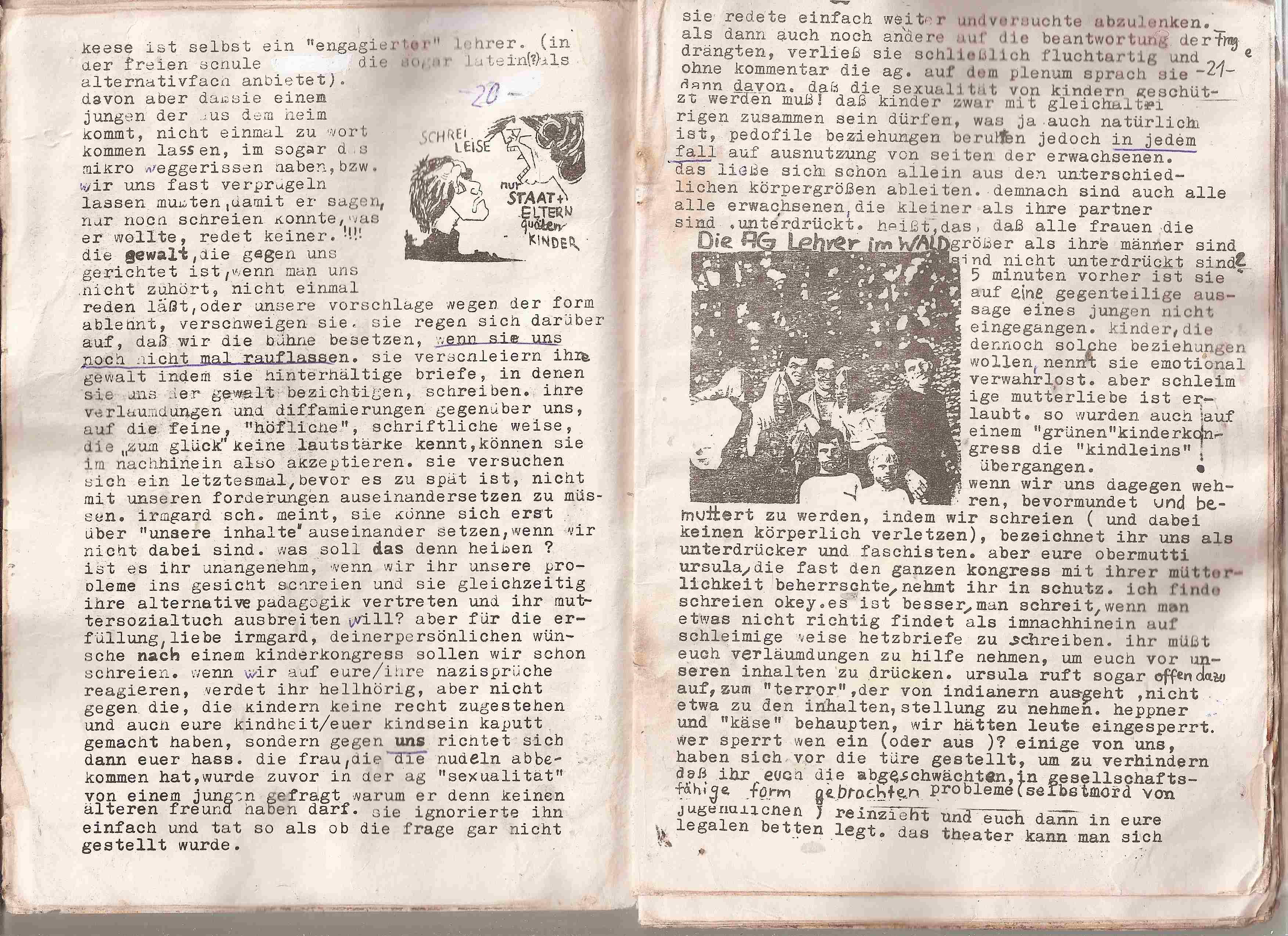 Nicht mal heute will man unsere Dokumente wahrnehmen. Die gesamten Details werden mit der "Pädophilie-Keule" erschlagen. Hier gibt es zahlreiche Stellungnahmen betroffener Jugendlicher, die aufzeigen, welchen schmierigen agressiven Erbrechenswahnsinn die GRÜNEN Pädagogen, in heeren Massen von der Partei mobilisiert nach Kamp-LIntfort, der Jugend-AG angetan wurde. Kamp -LIntfort war die letzte Chance der Grünen Pädagogen, das für sie "schlimmste" zu verhindern und sie nahmen diese Chance wahr. Die Behandlung der Jugendlichen seitens der GRÜNEN Pädagogen wurde komplett unterdrückt und verschwiegen. Zu diesem Zweck dokumentieren wir hier den gesamten Rattenfänger "83/84, zweite Fassung, das detaillierte Programm, wie es sich nach dem Kongreß darstellte, findet sich hier: