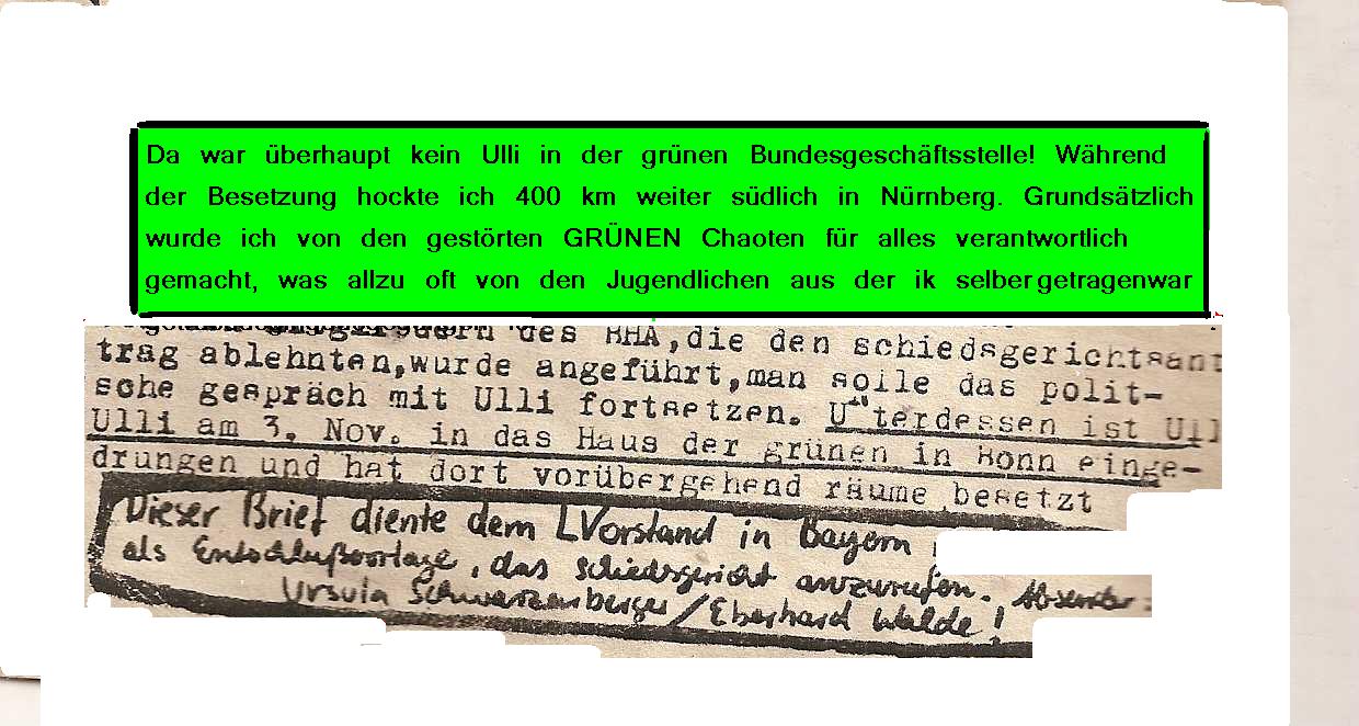 NIcht anders bei den GRÜNEN: jedesmal musste man von Sitzung zu Sitzung, von Versammlung zu Versammlung bei Null wieder anfangen: Beschlüsse wurden gefasst, und wieder torpediert. An Beschlüsse wurde sich nicht gehalten: von der Bundesgeschäftsstelle gingen diktatorische Vorgehensweisen aus, man setzte sich dort über alle Beschlüsse hinweg und verschickte Dreck an die Grüne Basis anstatt unser Programm und unsere Stellungnahmen. Die Gründe für unser Verhalten wurden also gar nicht bekannt. Man log den Leuten was vor, wodurch ich schliesslich ausgeschlossen wurde. Ein Beispiel nur siehe unten. Ein anderes Beispiel war mein Zusammenstoss mit einer Stasi_Tante, (Fotografin) als ich einige Leute vor ihr schützen wollte. Die Frau, bzw ihre Kamera ging zu Boden, man beschuldigte mich später der Gewalt gegen diese Frau. Vorher hatte man aber schon klar um ein Fotografierverbot gebeten. So liefen die Sachen ab. Später war man entsetzt, dass es tatsächlich eine Stasi Tante gewesen war, aber da war ich schon längst rausgeschmissen. Auf diese Weise brachten sie die gesamte Kinderrechte AG voll zum Ausflippen. Was die Medien wahrnahmen, waren dann nur die "chaotischen" Auftritte der Betroffenen. Die wurden dann genüsslich ausgeschlachtet. Bis heute sind die Hintergründe völlig unbekannt und ausgeblendet. Grüne Gewaltorgien in allen Facetten noch und nöcher.- Forderungen der Kinderrechtler aus dem Zusammen gerissen und verrissen und über Geschäftsordnungstrix und Fehlverhaltenskonditionierung wurden wir kaputt gemacht. So haben die mich dabei aus ihrer Partei rausgeboxt: mit permanent fetten Lügen wie hier.