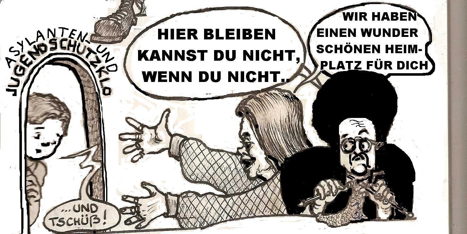 j e d e s wirklich eigenverantwortliche Tun gelähmt wird, stattdessen blosse Kreuzungen auf Walzetteln veranstaltet werden, um weiterhin den Schein von Mitbestimmung vorzuspiegeln und den Menschenskindern ihren unerfüllten Traum von Mitbestimmung, Selbstbestimmung , Konsens, Frieden und liebesumarmender Vereinigung aller Menschen, die das möchten, durchgehend bis ins Grab weiter träumen zu lassen. So erklärt sich die wohl "größte Herausforderung", von der die integrativen Flüchtlingsunterstützer blubbern, die ankommenden Kinder und Jugendlichen von dieser Vereinigung zu trennen, bevor sie überhaupt daran denken, indem sie die Teilung in Oberkörper- und Unterleib fortführen - an ihrem neuen Versuchskaninchenfrischfleisch- den unbegleitflüssigen Flüchtlingskindern wolllustig durchziehen und ausbauen
