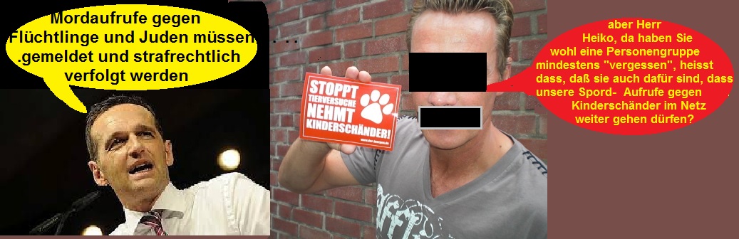 +++was machst Du, wenn Heiko Maas nichts dazu sagt (sich in Schweigen hüllt, wie schon viele Verantwortliche Jahre und Jahrrzehnte zuvor)= oder nur RabuLustik dazu verbreitet, wenn Mord- und Vergasungsaufrufe gegen Pädophile im Netz oder auf Demonstrationen auftauchen? Keine Antwort- schweigen, nichts als schweigen+++