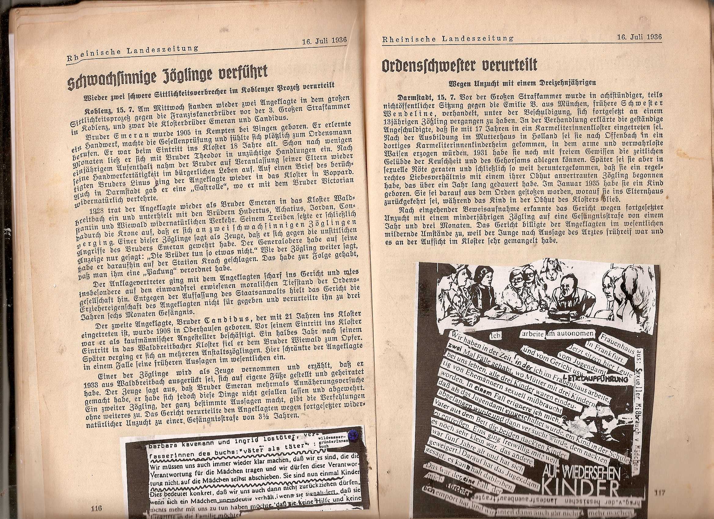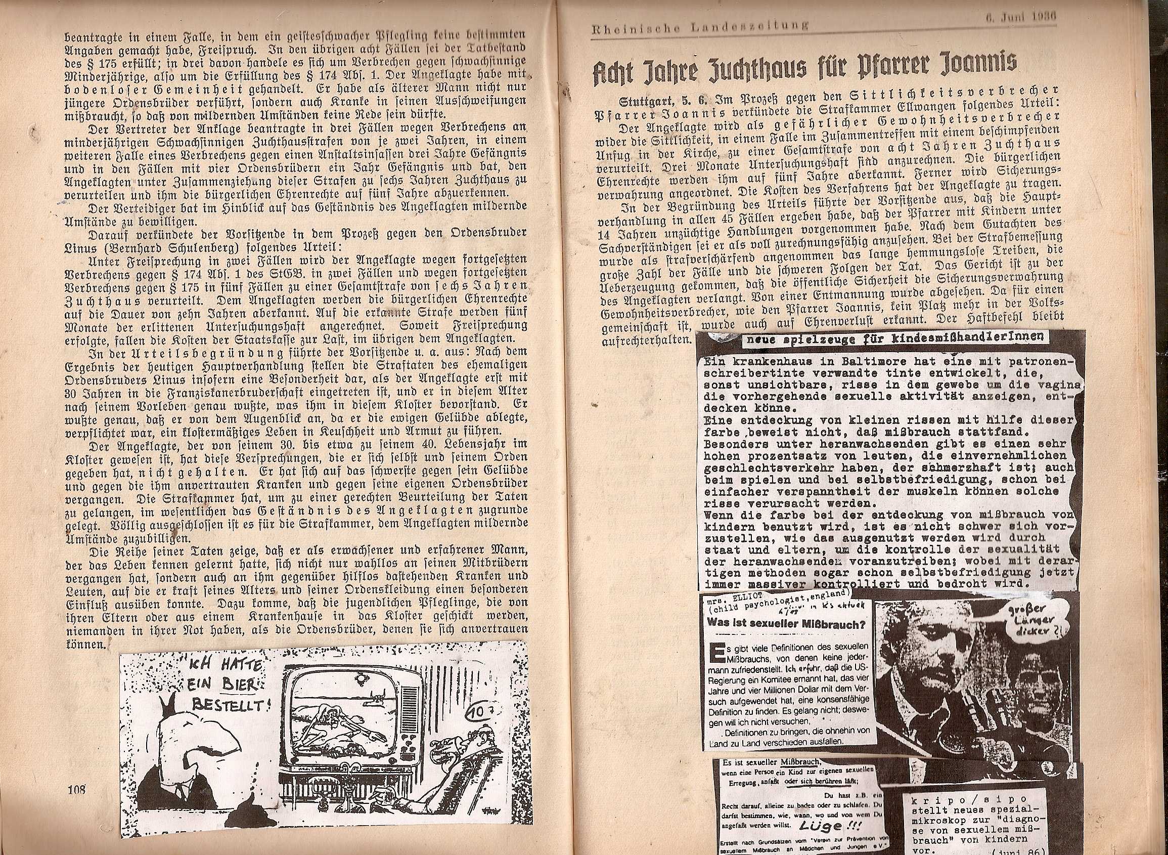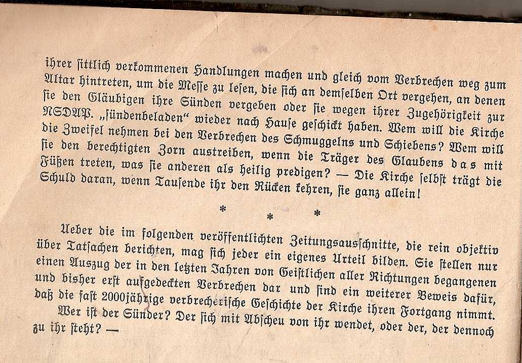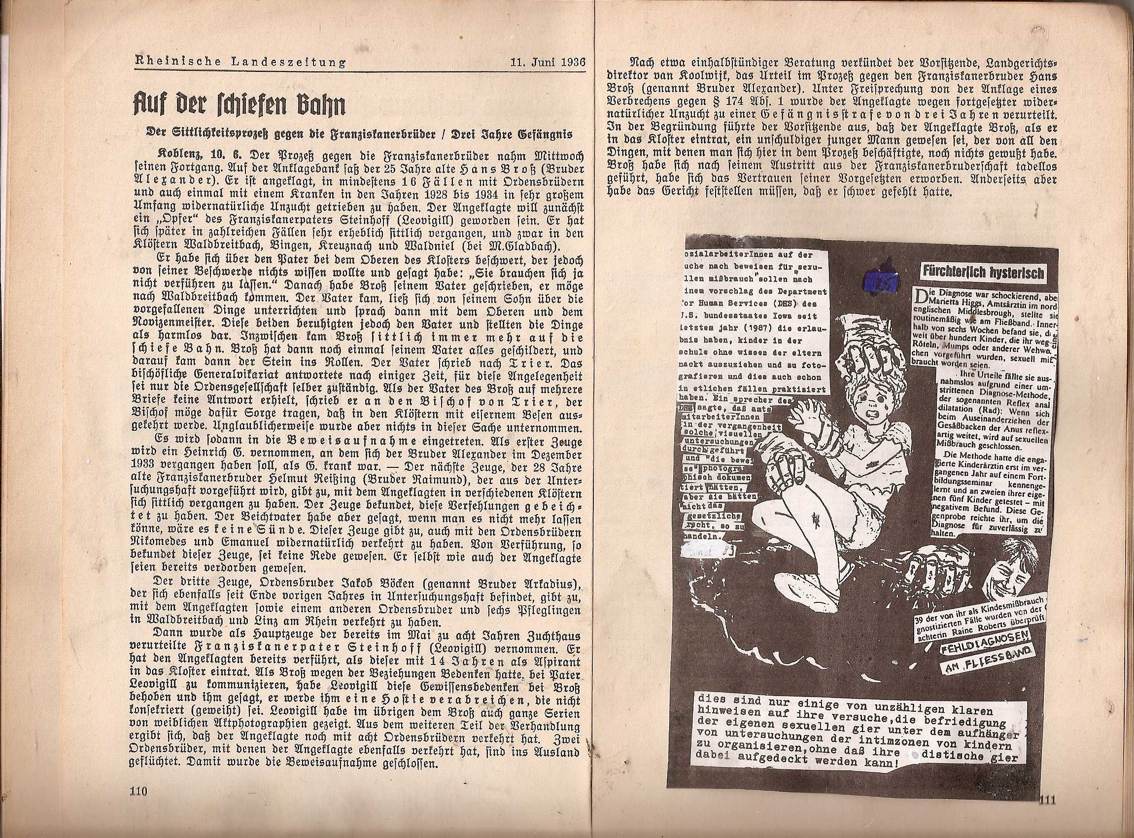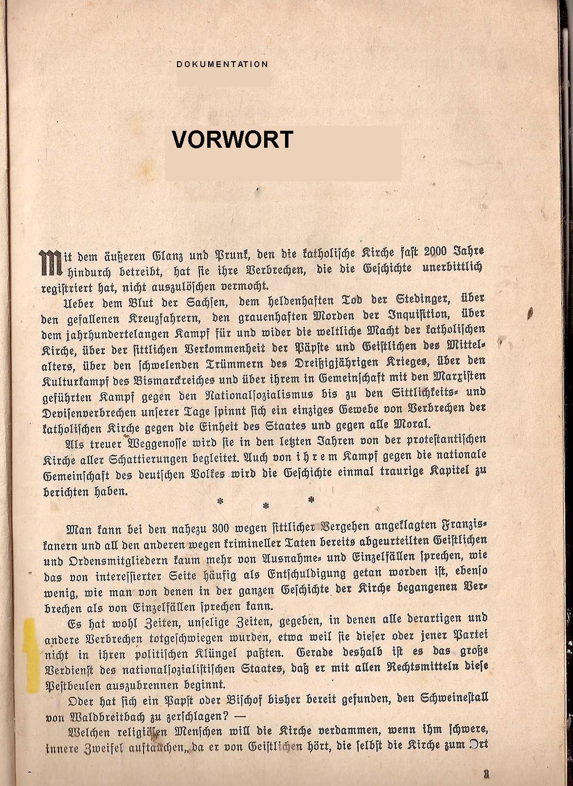 Nachfolgende Texte aus dem Dokument "an ihren Taten sollt Ihr sie erkennen" Zusatzbemerkung: es geht hier nicht darum, zu untersuchen, ob oder welche Teile z.B. der in diesem Dokument gebranntmarkten "Franziskaner" sich im politischen Widerstand befanden und ob oder welche mit den Nazis kolaborierten. Franziskaner waren ja angeblich AUCH Henker in den massenhaft entstehenden Konzentrationslagern (davon alleine neun Kinder-KZ). Im Vernichtungslager Jasenovac, wo über 200.000 Serben und Juden ermordet wurden, war der Franziskaner-Pater Filipovic offenbar zeitweise KZ-Kommandant; in dieser Zeit also wohl verantwortlich für 40.000 Morde gewesen. Man könnte auch spekulieren, ob sich dieser Mensch von seiner Verfolgung oder Vernichtung freikaufte, indem er an dem grausigen Geschehen teilnahm, aber da sollen die schlauen Historiker mal was zu sagen. Andererseits dürfte wohl ein Großteil der verurteilten Straftäter (?) auch in den KZs verschwunden sein. Samt ihren jüngeren Freunden, die man mit dem Etikett "sexuell pervers oder verwahrlost" oft genug ebenfalls in den KZs verschwinden ließ. Und da ging es um Menschen, die nach § 174, 175 und 176 verfolgt und verurteilt waren. Hier geht es nur darum, die Sprache kennen zu lernen, mit der damals wie heute ohne Rücksicht auf irgendwelche tatsächlichen" Qualitätsunterschiede" mit dem anliegenden Thema umgegangen wurde / wird, ob es eine historisch-hysterische Begriffs- und Emotionsschürungs- Kontinuität gibt oder nicht, mit den entsprechenden wohl in beiden Epochen sehr wohl sprachlich beabsichtigten massenpsychologischen Wirkungen und einem wie auch immer ganz sicher auch auf einem teilweisen durch Sprachungenauigkeit, Sprachverwirrung und verbaler Hysterisierung aufgebauten Vernichtungsfeldzug gegen die Objekte dieser Kampagnen. Und da spielt der eingebürgerlichte KINDERSCHÄNDERBEGRIFF eine herausragende Rolle.[/size]