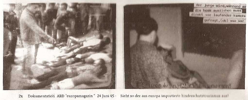 International vernetzte Kinderschutzorganisationen schrecken manchmal offenbar vor nichts zurück. Die Art der Verfolgung weltweit auftretender mutmasslicher und realer Vergewaltigung ist selber eine. Im Juni 1995 wurde in der ARD ein pornoähnliches Video über die Jagd auf Jungs in einem asiatischen Land ausgestrahlt. Schwedische oder andere westlich gesponsorte "Cops" machen Kinder an den Stränden des betreffenden Landes aus und melden sie den Cops des Landes.. Diese jagen dann die Kinder und Jugendlichen wie Karnickel und überwältigen sie. "Hinlegen!" Angeblich, um ihnen zu "helfen" und an ihre "Freier" ( oder an was sonst vielleicht ?) heran zu kommen. Dann brechen sie in ihre Unterkünfte ein, reissen die Kinder halb nackt und nackt aus ihren Betten, reissen ihnen evtl. die Klamotten vom Leib (wenn sie noch welche anhaben) bzw. manipulieren ihre Körper durch Anweisungen oder Berührungen, so dass die Schamgegend sichtbar wird und betrachten den Penis der Jungs. Und filmen das ganze. Legale Pornografie vom feinsten. Ausserdem wird mit Schlägen gearbeitet oder gedroht. Machst Du keine Aussage, gibt es Prügel. Die so erpressten "Geständnisse" ("Beweissicherung") bewirken eine Beförderung der jeweiligen Bediensteten. Die Kids selber landen in bootcampähnlichen Gefängnisstrukturen. Härtester Drill vom feinsten, mitschuldig.... Wer abhaut oder abzuhauen versucht, wird von mitgefangenen Kids geschlagen. Jeder darf mal zuschlagen. Hier wird sehr deutlich, daß und wie man auch hier die Kinder und Jugendlichen domestiziert, unterwirft, voll mitbestraft und kriminalisiert. Man sieht an diesem Beispiel, wie die wohl mit der "Kinderichtiggebrauchs - Industrie" zusammen hängende, von ihr oder sonstwie gesponsorten "Kinderschutzbanden" weltweit Kinder und Jugendliche, indirekt oder direkt selbst angreift und verletzt, die sie zu schützen vorgibt. Siehe auch die Vorfälle in Nürnberg, wo man Kids in Gefängnissituationen dermassen belastete und erpresste, um sich entsprechende Aussagen zu beschaffen, die um ein Haar geeignet waren, um Kinderrechteaktivisten für Jahre oder vieleicht auch für immer hinter Gitter verschwinden zu lassen. Und jetzt? jetzt vertreibt man sie aus dem Mittelmeer, der letzten Möglichkeit noch, zu fliehen, denn das ist noch zu nah an Europa, dass es zu viele Leute mitkriegen, und was dann mit ihnen in der Türkei oder in den Kriegsgebieten passiert, in die man sie zurückschickt, ist noch weniger sichtbar. Auch da funktioniert das Filtersystem, der legale "Kinderrichtiggebrauch", Und man sieht auch hierzulande trotzdem noch eine zweite Strafstruktur gegen Kids, die sich noch viel verheerender auswirkte: man verwickelt sie mit feinstzer begrifflichkeit (zB "Inobhutnahme") in unendliche Jugendamtsbedrängnis bis hin zu den fast unbekannten Schicksalen ihres Todes, indem man die jungen Menschen vertreibt, wohin sie geflüchtet sind, offenbar mit vollem Risiko, dass sie diese Treibjagden nicht überleben.