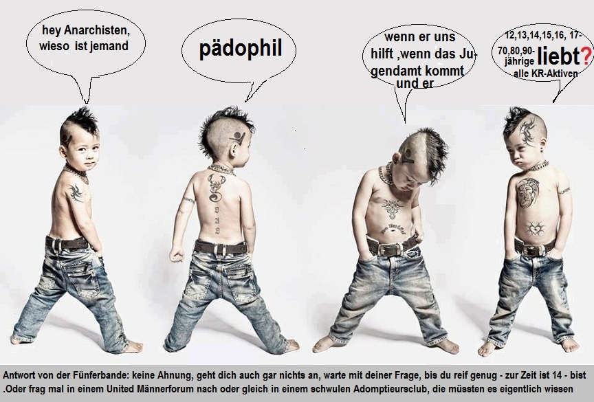 kleiner Einschub werter Herr Admin, natuerlich nur mein subjektives Unterleibsempfinden, oder eine Kopfgeburt sozusagen Ihnen rueber zu schicken, was ich Ihnen hier mitzuteilen habe, also was sie und ihre aehnlich veranlagten mitrausschmeisser alles bereit sind sausen zu lassen, unser ganzes leben kaputt zu machen, sollen wir euch mal kurz vorfuehren, wie sich das anfuehlt_ was Sie mit uns gemacht haben ? und Ihren Guenstlingen ueber uns unsere ^Abartigkeit^ und ^unzurechnungsfaehigkeit^ reinzdrueckten ? die ueberhaupt nicht mehr blicken und nicht mal wir in dem moment blicken konnten, warum wir gegen Ihre Viererbande einen dermassenen aufstand gemacht haben, das ganze Fluechtlingselend sind Sie bereit sausen zu lassen, und auch die anarchistische Idee, mir der sie die jungs taeuschen, die Sie ueber musik zu sich holen, um ihren neigungen zupass eine bestimmte selektion durchzufuehren ? Das Brett vorm Kopf, das sie uns angenagelt haben, ist abgefallen, leute, grad wird hier immer deutlicher, naemlich dass sie uns wegen Ihrer zugegeben anerkennenswert schwer erkaempften Knabenschuelerjugend in Ihrem Forum unterwegs waren und sind, um uns in die potentielle Lynchecke zu draengen nur um ihr schoenes spiel durchzufuehren, und das zumindest psychosexuell nicht gerade allzuweit entfernt davon, was sie uns unterstellten /ABER SIE SAGEN DAS NICHT OEFFENTLICH, und womit sie uns rufmordeten und schliesslich abgeschoben haben. WEIL SIE SCHISS HABEN, DASS ES RAUSKOMMT, WIE SIE EMPFINDEN, UND DAS HALTEN SIE NICHT AUS...